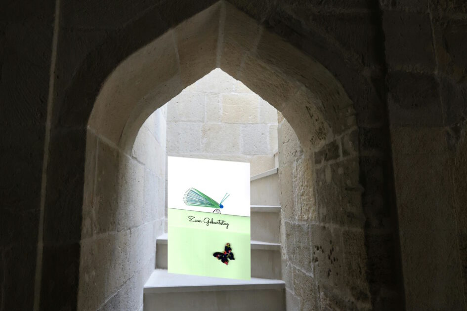 Aus meiner Sicht passen Falter nahezu immer zu einer Geburtstagskarte, so auch das Ampfer-Grünwidderchen. Aber ich wollte ihn nicht so allein auf der Grußkarte belassen und setzte ihm noch einen bunten Schmetterling hinzu, der auf dem mintgrünen (Trendfarbe 2024) Hintergrund platziert ist.